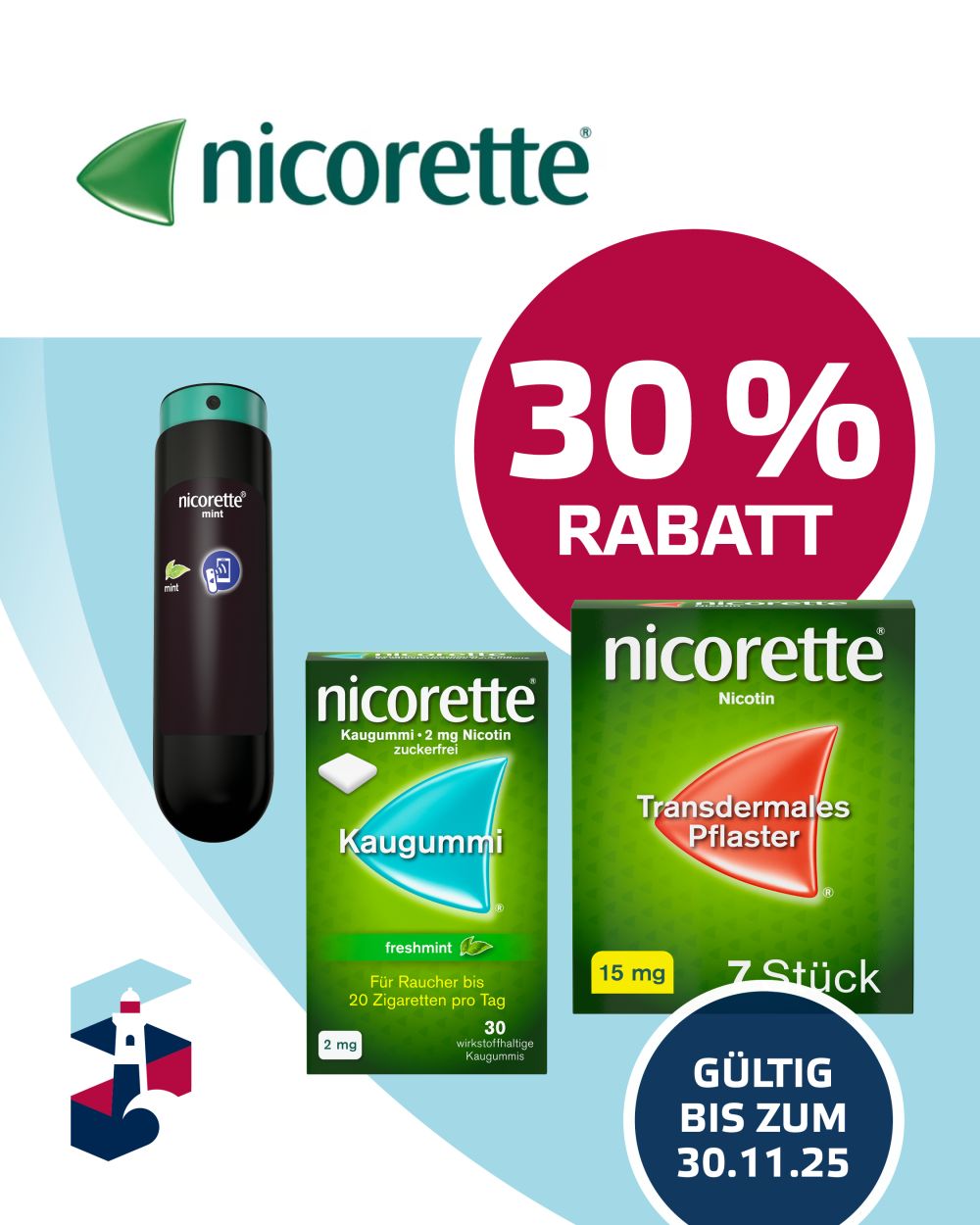30 % Sofortrabatt beim Kauf von Nicorette Produkten für mindestens 25 €
