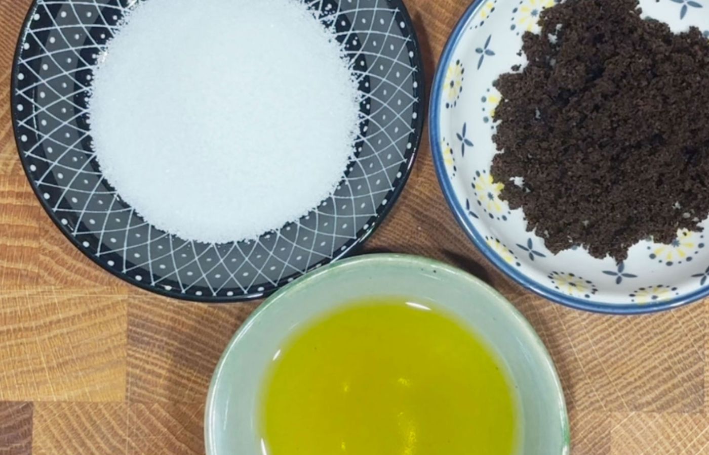Sanftes DIY Peeling mit Olivenöl, Kaffeesatz und Zucker