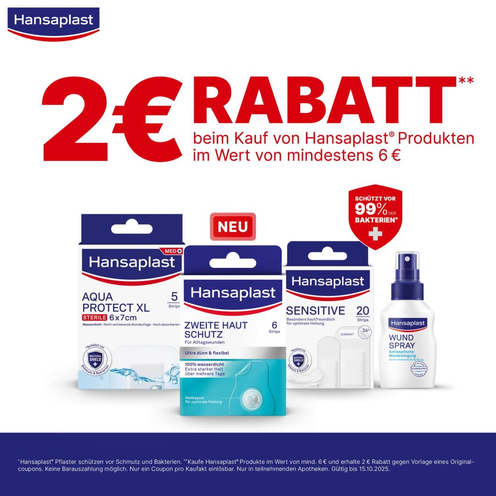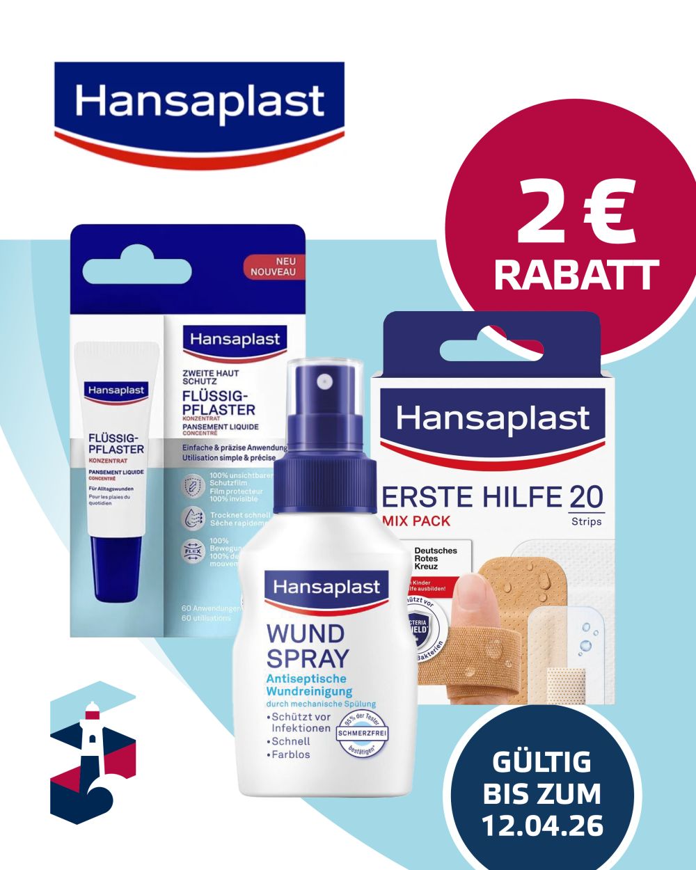2 € Rabatt beim Kauf von Hansaplast Produkten im Wert von mindestens 6 €