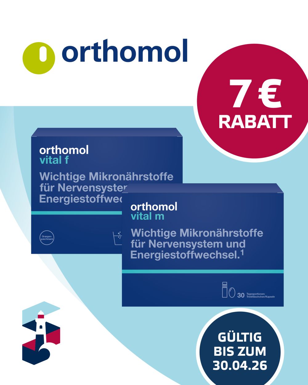 7 € Rabatt auf eine Monatspackung Orthomol Vital