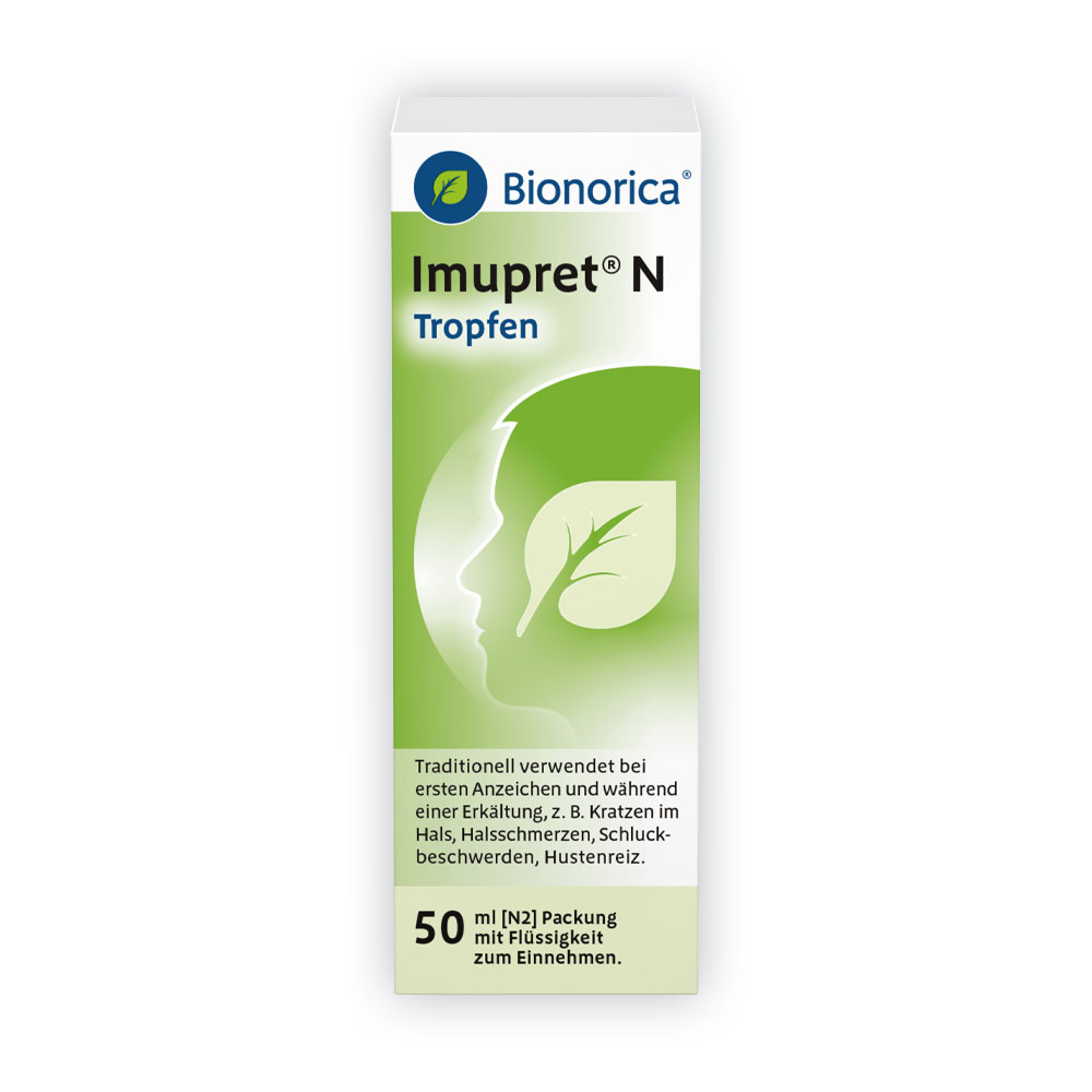 Imupret® N ist ein traditionelles pflanzliches Arzneimittel, das bereits bei den ersten Anzeichen einer Erkältung angewendet wird, wie z.B. Kratzen im Hals, Halsschmerzen, Schluckbeschwerden und Hustenreiz.