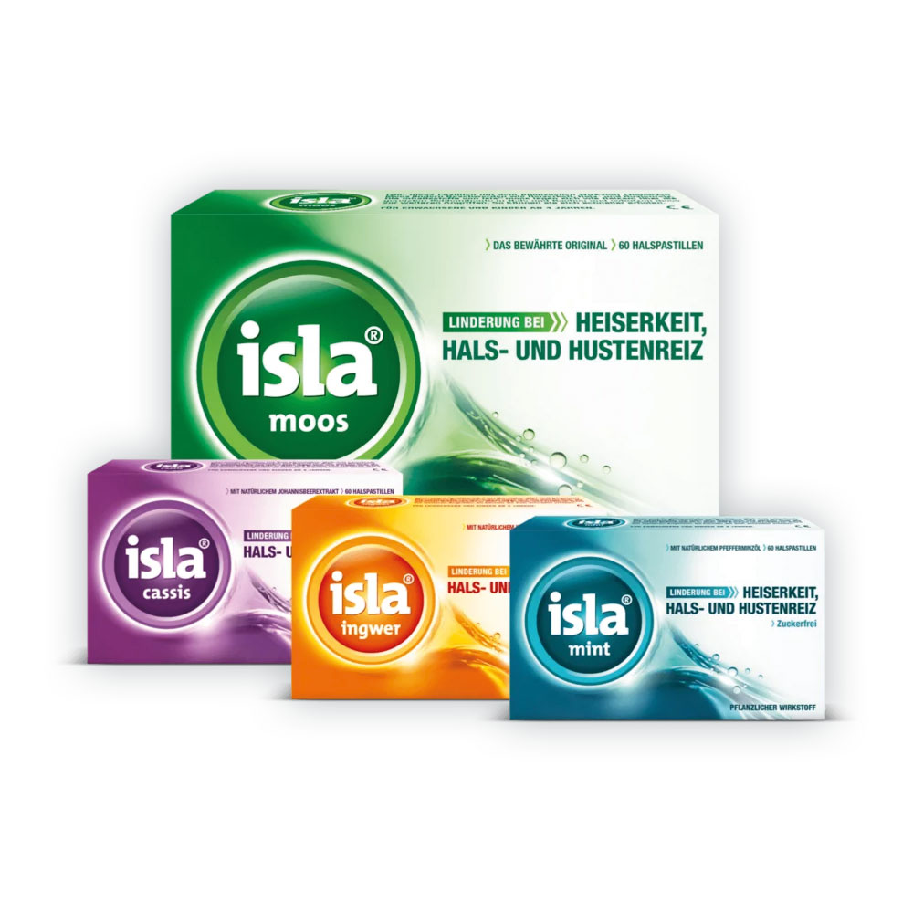 - In vier Geschmacksrichtungen: Moos, Cassis, Mint und Ingwer
